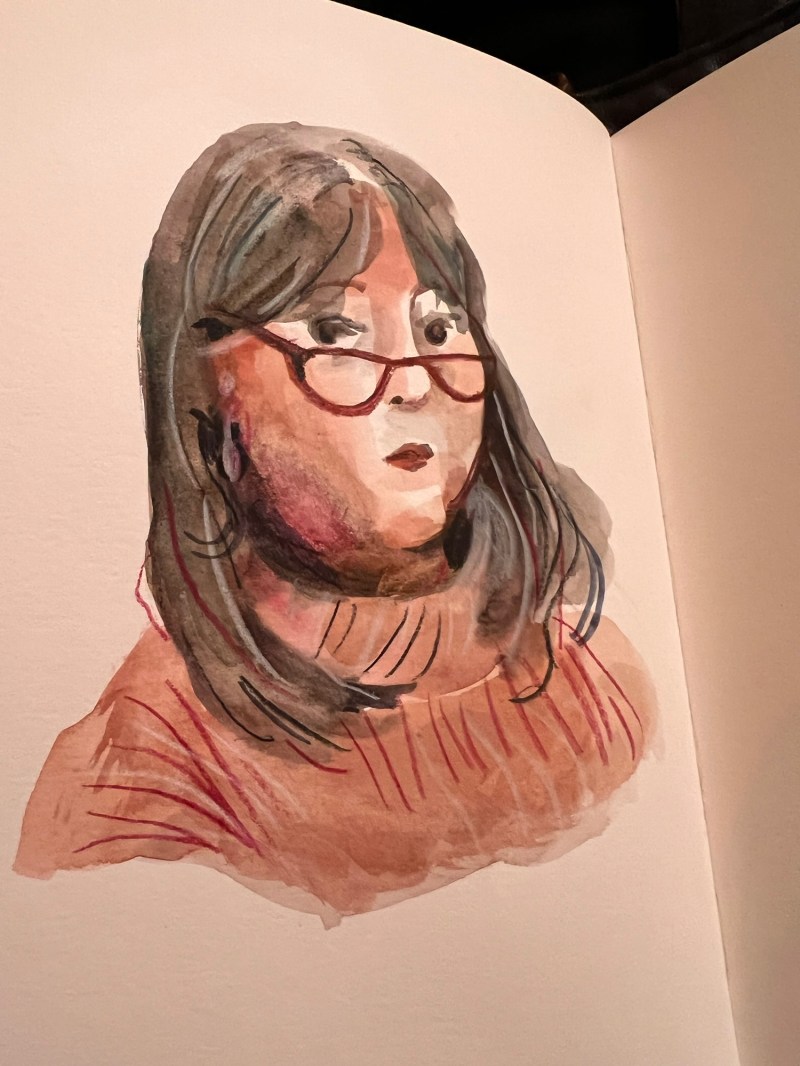Whenever I’m out sketching with friends, and they sketch me, I’m always faintly horrified at what I see. Is that really me? I have to accept that it is. My…
