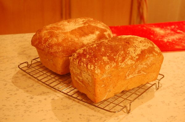 Finally. Produced two loaves that are respectable. Allinsons premium extra strong white flour. Pre-warmed flour, more than the usual 600ml water. Olive oil in the mix and on the bread…